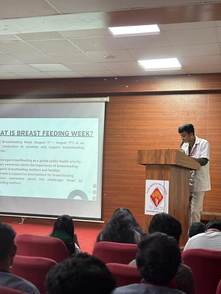 On August 1–7, 2025, World Breastfeeding Week was observed at Patel Group of Nursing Institution. The program included seminar sessions highlighting the importance, benefits, and challenges related to breastfeeding for both mothers and infants. A quiz competition and Rangoli competition was also conducted to actively involve students and enhance awareness. The theme of World Breastfeeding Week 2025 was “Breastfeeding Support: Close to Mothers,” and the colour code observed was Light Blue.